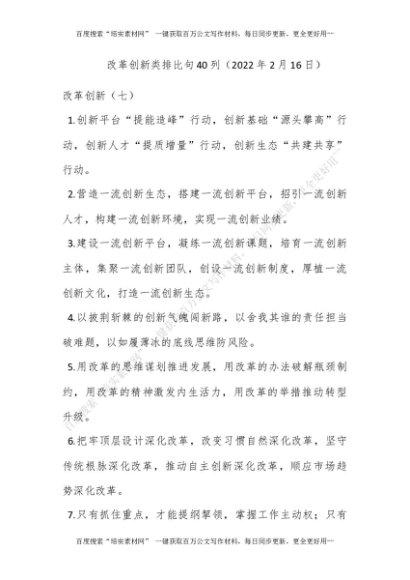 改革创新类排比句40列(2022年2月16日)[更多资源请百度搜索“培实素材网”]