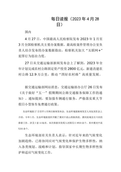 每日读报(2023年4月28日) [更多资源请百度搜索“培实素材网”]