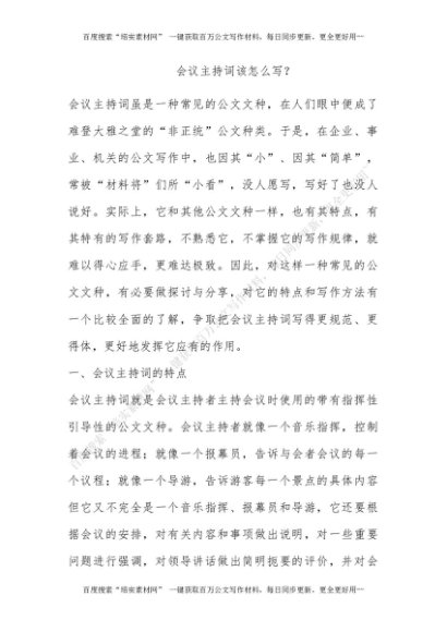 会议主持词该怎么写?[更多资源请百度搜索“培实素材网”]