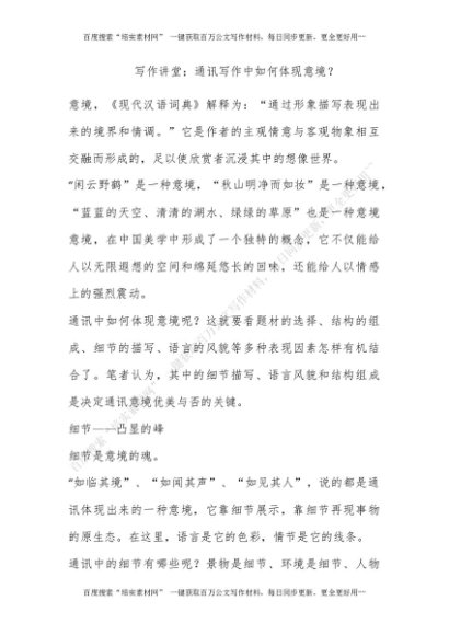 写作讲堂:通讯写作中如何体现意境?[更多资源请百度搜索“培实素材网”]