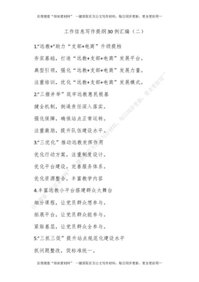 工作信息写作提纲30例汇编(二)[更多资源请百度搜索“培实素材网”]