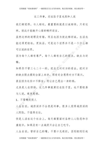 这三件事,烂在肚子里也别和人说[更多资源请百度搜索“培实素材网”]