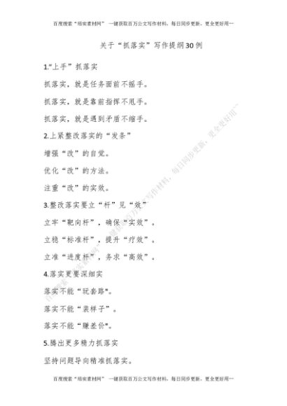关于“抓落实”写作提纲30例[更多资源请百度搜索“培实素材网”]