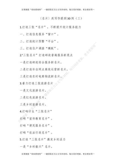 〔名片〕类写作提纲30例(三)[更多资源请百度搜索“培实素材网”]