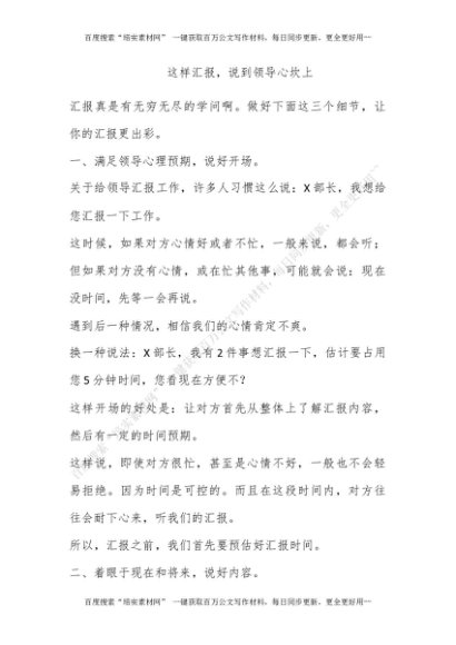 这样汇报,说到领导心坎上[更多资源请百度搜索“培实素材网”]