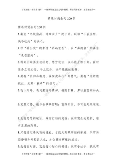 精选对偶金句100例[更多资源请百度搜索“培实素材网”]