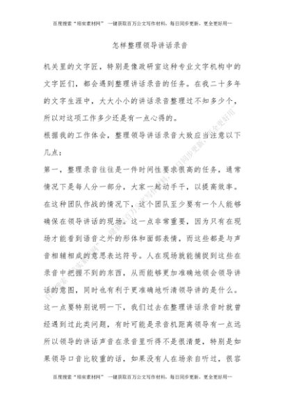 怎样整理领导讲话录音[更多资源请百度搜索“培实素材网”]