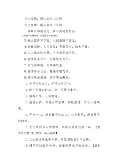 抗击疫情,暖心金句100例[更多资源请百度搜索“培实素材网”]