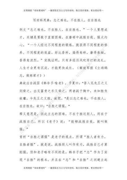 写材料用典:志之难也,不在胜人,在自胜也[更多资源请百度搜索“培实素材网”]