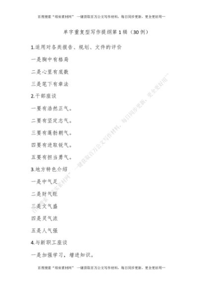 单字重复型写作提纲第1辑(30例)[更多资源请百度搜索“培实素材网”]