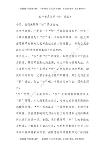 笔杆子是怎样“抄”成的?[更多资源请百度搜索“培实素材网”]