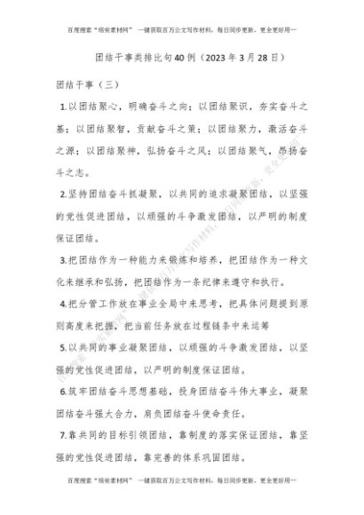 团结干事类排比句40例(2023年3月28日)[更多资源请百度搜索“培实素材网”]