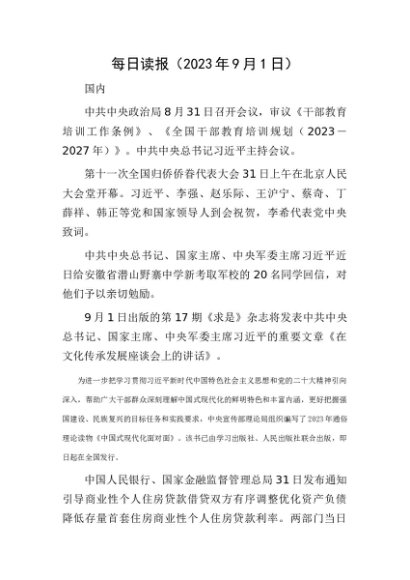 每日读报(2023年9月1日)[更多资源请百度搜索“培实素材网”]