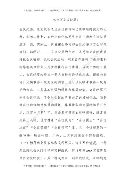 怎么写会议纪要?[更多资源请百度搜索“培实素材网”]