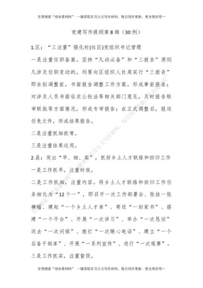 党建写作提纲第8辑(30例)[更多资源请百度搜索“培实素材网”]