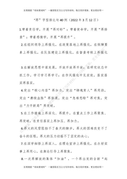 “再”字型排比句40例(2022年3月12日)[更多资源请百度搜索“培实素材网”]