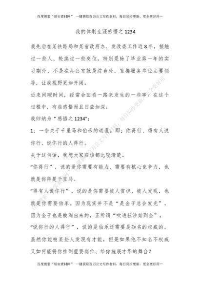 我的体制生涯感悟之1234[更多资源请百度搜索“培实素材网”]