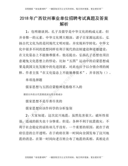 2018年广西钦州事业单位招聘考试真题及答案[更多资源请百度搜索“培实素材网”]
