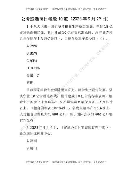 公考遴选每日考题10道(2023年9月29日)[更多资源请百度搜索“培实素材网”]