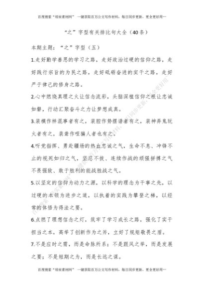 “之”字型有关排比句大全(40条)_4[更多资源请百度搜索“培实素材网”]