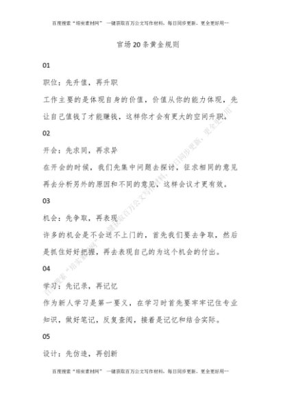 官场20条黄金规则[更多资源请百度搜索“培实素材网”]