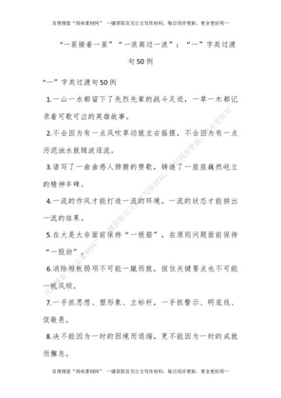 “一茬接着一茬”“一浪高过一浪”:“一”字类过渡句50例[更多资源请百度搜索“培实素材网”]