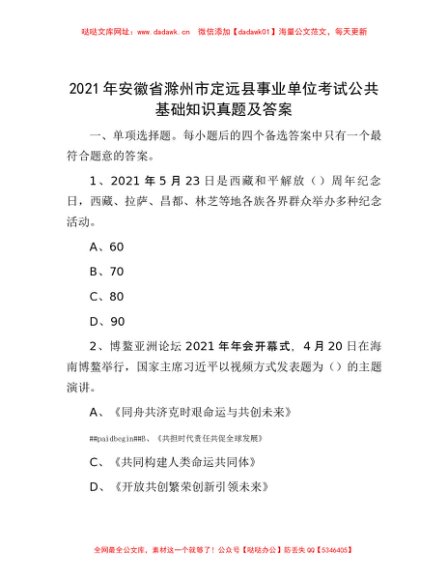 2021年安徽省滁州市定远县事业单位考试公共基础知识真题及答案[更多资源请百度搜索“培实素材网”]