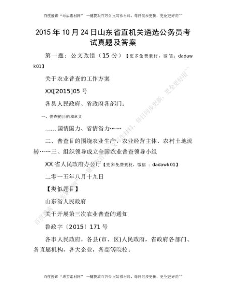 2015年10月24日山东省直机关遴选公务员考试真题及答案[更多资源请百度搜索“培实素材网”]