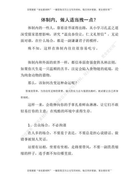 体制内,做人适当拽一点? [更多资源请百度搜索“培实素材网”]
