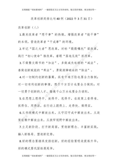 改革创新类排比句40例(2022年3月31日)[更多资源请百度搜索“培实素材网”]