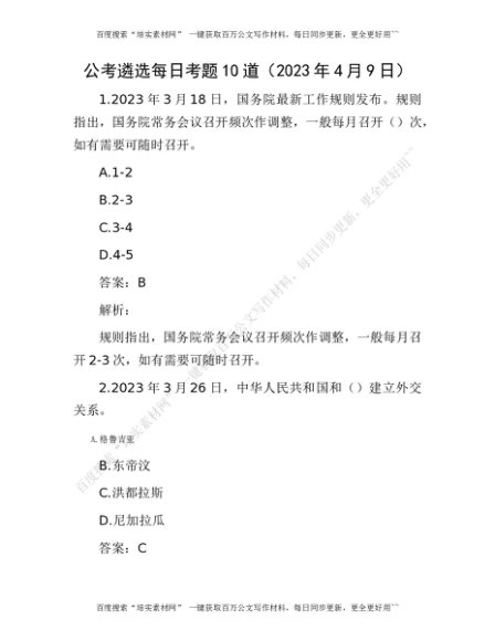 公考遴选每日考题10道(2023年4月9日)[更多资源请百度搜索“培实素材网”]