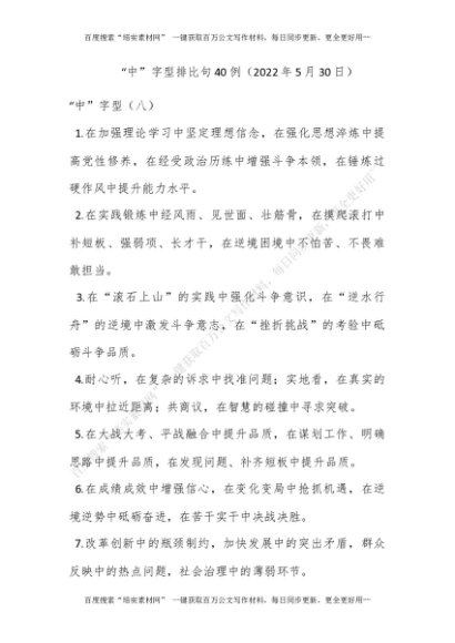 “中”字型排比句40例(2022年5月30日)[更多资源请百度搜索“培实素材网”]