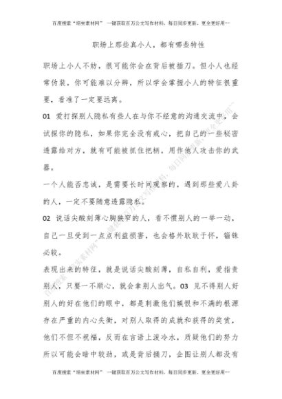 职场上那些真小人,都有哪些特性![更多资源请百度搜索“培实素材网”]