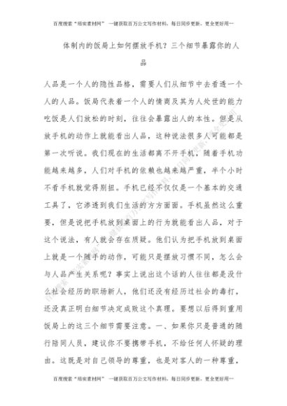 体制内的饭局上如何摆放手机?三个细节暴露你的人品[更多资源请百度搜索“培实素材网”]