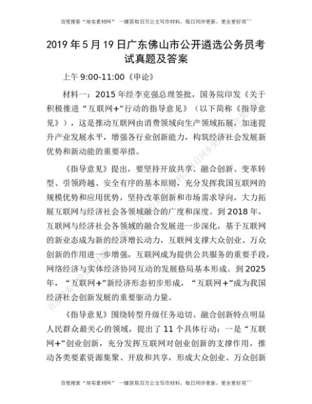 2019年5月19日广东佛山市公开遴选公务员考试真题及答案[更多资源请百度搜索“培实素材网”]