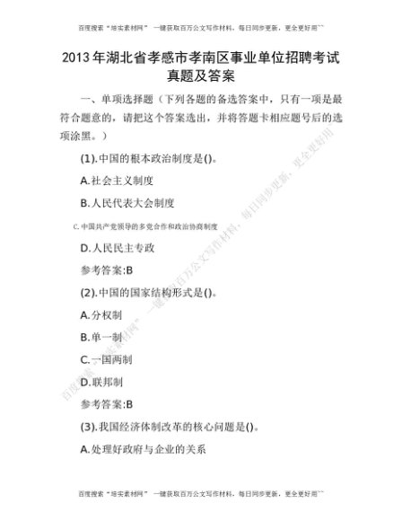 2013年湖北省孝感市孝南区事业单位招聘考试真题及答案[更多资源请百度搜索“培实素材网”]