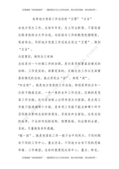 起草地方党委工作总结的“五要”“五言”[更多资源请百度搜索“培实素材网”]