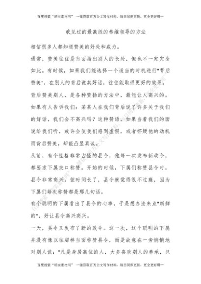 我见过的最高级的恭维领导的方法[更多资源请百度搜索“培实素材网”]