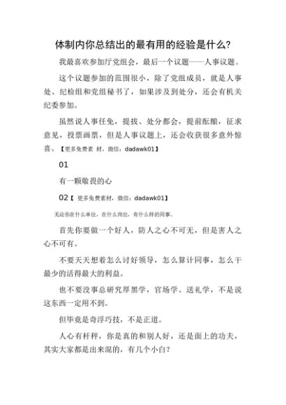 体制内你总结出的最有用的经验是什么?[更多资源请百度搜索“培实素材网”]