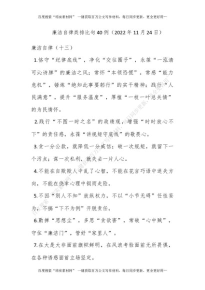 廉洁自律类排比句40例(2022年11月24日)[更多资源请百度搜索“培实素材网”]