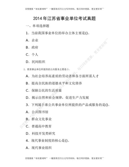 2014年江苏省事业单位考试真题[更多资源请百度搜索“培实素材网”]