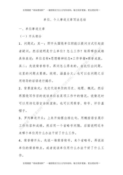 单位、个人事迹文章写法总结[更多资源请百度搜索“培实素材网”]