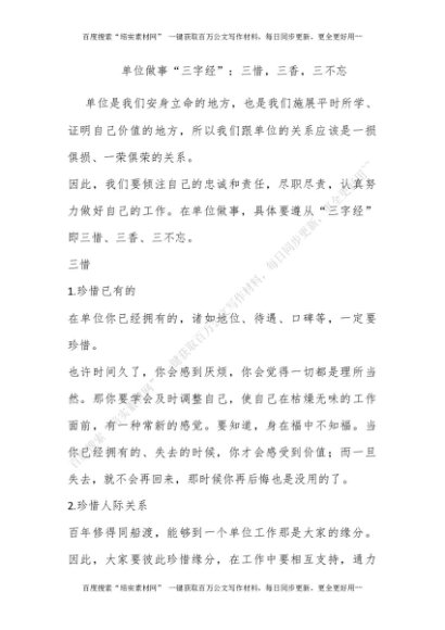 单位做事“三字经”:三惜,三香,三不忘[更多资源请百度搜索“培实素材网”]