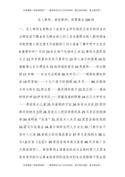 名人事例、典型事例、哲理寓言100例[更多资源请百度搜索“培实素材网”]