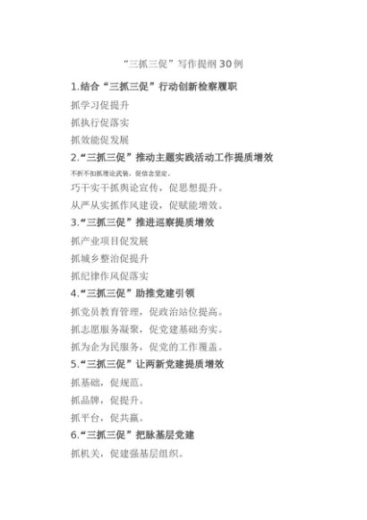 “三抓三促”写作提纲30例有重名 569817[更多资源请百度搜索“培实素材网”]