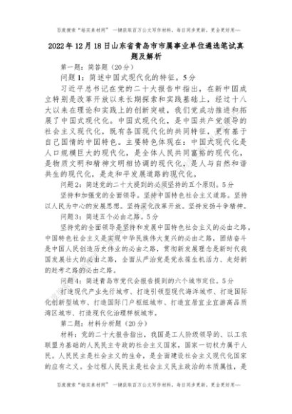 2022年12月18日山东省青岛市市属事业单位遴选笔试真题及解析[更多资源请百度搜索“培实素材网”]