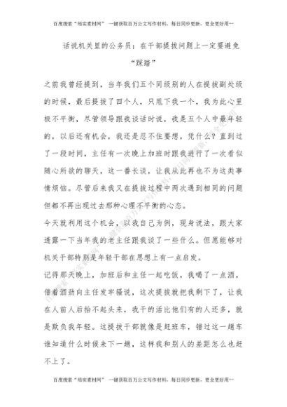 话说机关里的公务员:在干部提拔问题上一定要避免“踩踏”[更多资源请百度搜索“培实素材网”]