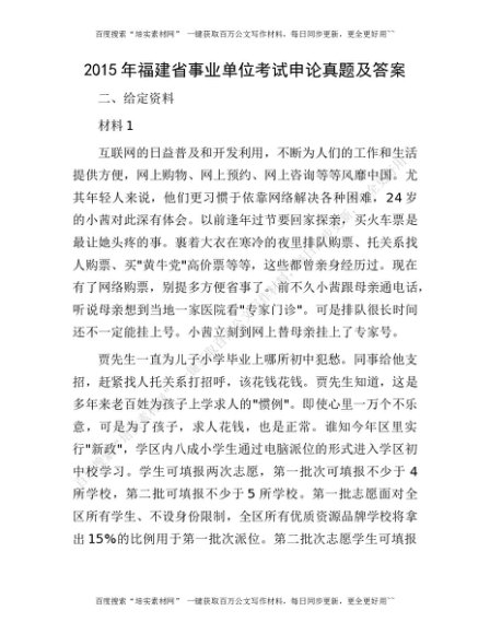 2015年福建省事业单位考试申论真题及答案(1)[更多资源请百度搜索“培实素材网”]