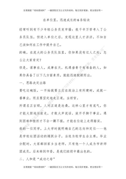 在单位里,迅速成长的6条秘诀[更多资源请百度搜索“培实素材网”]