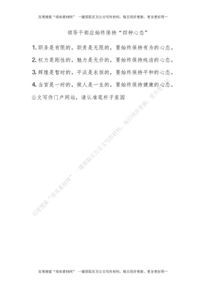 领导干部应始终保持“四种心态”[更多资源请百度搜索“培实素材网”]